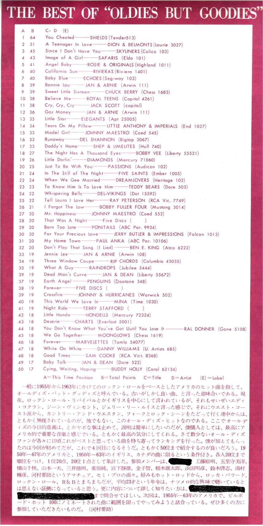 先日レコードの整理をしていたところ、以前書いたOLDIES人気投票が掲載されたヤマハのパンフレット"Rock54"が見つかりました。よくとっておいたものだと思います。スキャナーで取り込んでみましたので、ここにその証拠としてお見せすることにしました。