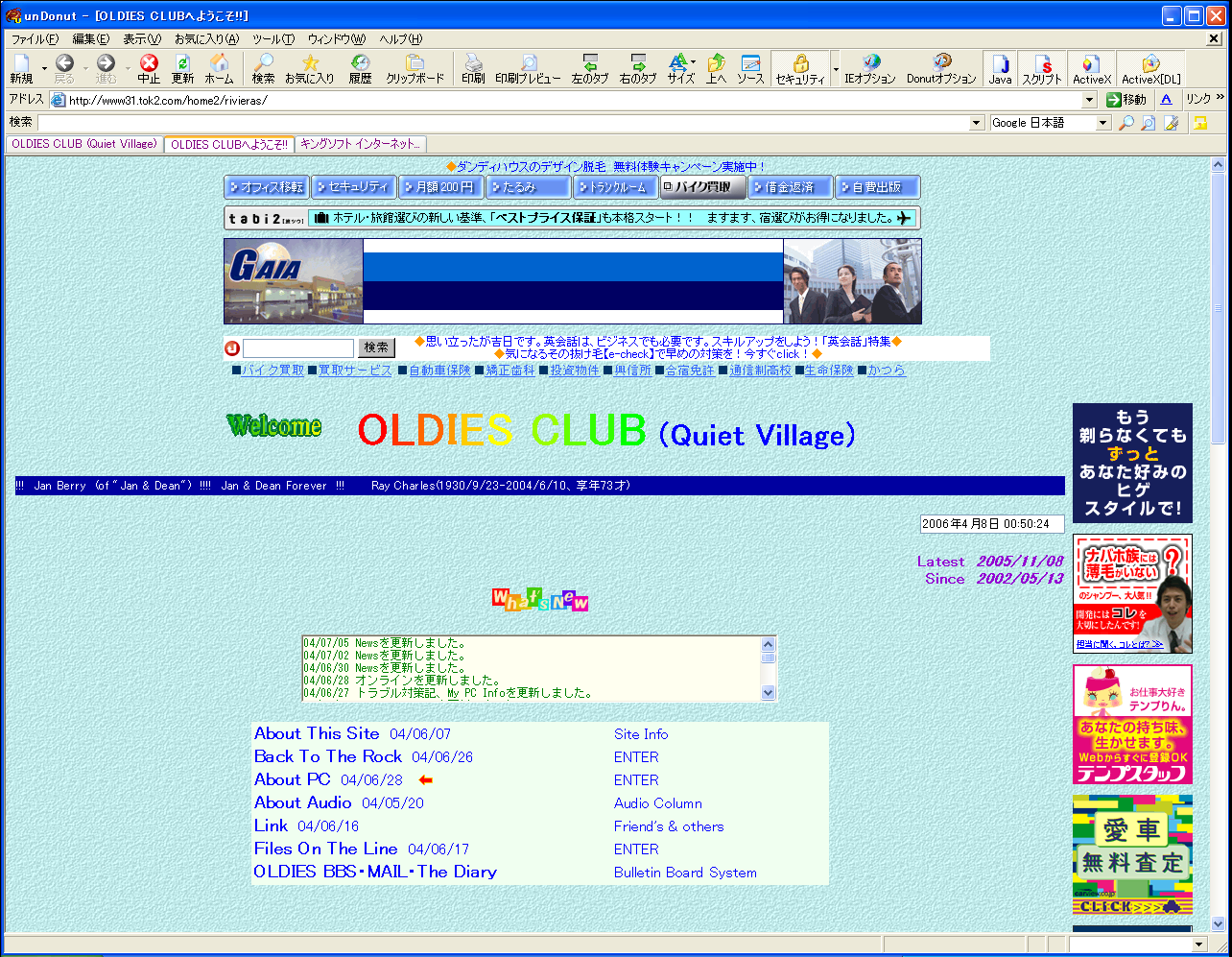 | Yahoo geocities | A | 最上部に大きな画像 | **不可 | 不可 | *50MB | なし | ほとんど ない |