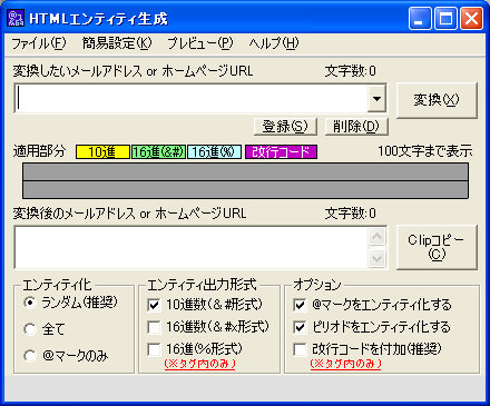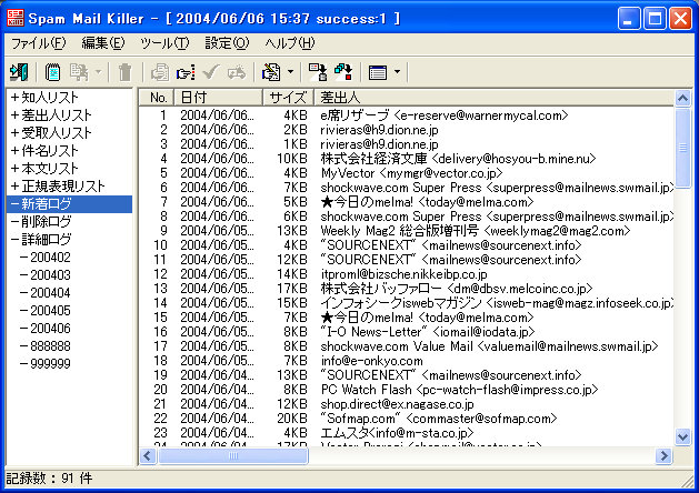 スパム対策はWEB FORUMで報告していますが、あらためてここで紹介しておきます。それにしても、使い始めるまでこれほど有効に動作するとは思ってもみませんでしたね。使い方は次のとおりです。起動するとタスクトレイにアイコンが表示されますので、 a タスクトレイのアイコンを右クリックし、管理を選択 b 新着ログを選択 c 削除対象にしたいメールをダブルクリック d 登録用のダイアログが表示されるので、選択された部分を右クリックして、差出人リストに登録する e 標準の削除方法で、差出人リストを使用するにチェックが入っていればOK 以上で登録されたものが、削除されるはずです。また、件名のパターン登録で、広告というキーワードを設定しておけば、これも有効です。 なお、最新バージョンは、2.07です。 サンプル HTMLエンティティ生成 WEBサイトや掲示板などで自分のメアドを公開する際に、ランダムな文字列に変更してくれるアプリです。実験の結果、残念ながらcgiの掲示板では動作しませんでしたが、HTMLファイル上では有効で、ブラウザで見ると正常に表示されるが、中身はランダムな文字列のため、メアド自動収集ツールからは無視されるというものでした。多少は使えるかも? なお、最新バージョンは1.61で、入手は次の場所からどうぞ。 サンプル http://ab.jpn.ph/ Win高速化 XP+(1) 2000/XPで動作する、いわゆるカスタマイズアプリ。初心者でも安心して、OSの高速化が期待できます。ただいま、開発が急ピッチで進んでいるようです。最新バージョンは公開後1.20からあっという間に、1.51までアップしています。基本的な正式バージョンの構成は、1.xの様ですから1.xxはベータ扱いでしょう。いずれは2.0までは行きそうですね。いまのところフリーウェアですが、果たしてどうなることやら...... 見た目や操作性は非常に良く、一見有料版と思われる様なほどの出来映えです。もちろん内容もですが。 ではまたの機会に。 |