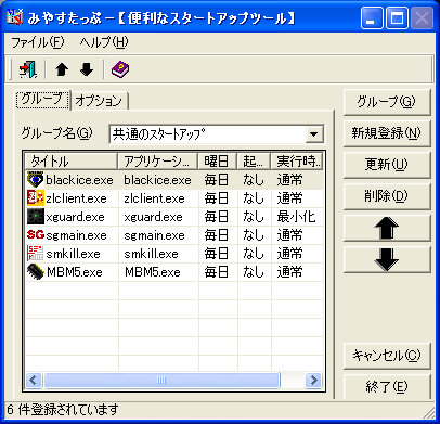 ところで、この種のページの構成として、アプリの入手先やアイコンなども表示した親切なサイトも数多くありますが、入手先はググればすぐ分かることなのと面倒なので、内容の紹介のみにしています。では、前回の続きと行きましょうか。 ExitWndw OSの終了を簡略化してくれ、さらに何らかの不具合で終了できなくなったときに、強制終了や強制再起動をしてくれる優れものです。わたしは、これをクイック起動に置いてワンクリックすると、メニューがデスクトップにフロート表示されるのが気に入っており、面倒なスタートメニューからの終了とはオサラバしてます。最新バージョンは、1.200です。なお、サンプルはメニュー画面です。 サンプル OS Select 多重ブートの環境では、なくてはならないほど重要なアプリです。次回にどのOSを起動させるかの動作を簡略化してくれるもので、ブート時のメニューを選択する必要は無くなります。これほど便利なものは、他に思いつくとしたらcaldixくらいしかないというほど便利なもので、作者に感謝です。最新バージョンは、0.16です。 サンプル EjctClse Special ドライブの開閉をしてくれるアプリで、上記二つと共にクイック起動に置いて動作させているもの。これを最初に入れたとき、動作しないドライブがあったので作者にメールしたところ、私の環境を測定するアプリを送ってくれました。早速報告したのですが、何と!!特別に作成してくれたのです。そこでSpecialと名付けて愛用しているというわけです。光学系ドライブは開閉動作を、MOやORBは取り出しをしてくれます。特に、MOとORBでも動作するのは特筆ものです。これも作者に大感謝です。なお、サンプルはメニュー画面です。 サンプル StapGo 常に起動しておくアプリは、OSのスタートアップに登録すれば良いのですが、こうするとOSの起動が遅くなります。とにかく、起動を速くするにはスタートアップを必要最小限にする方が望ましいのです。その後手動で起動するものを、みやすたっぷに登録し、本来は同梱のStapGoをOSのスタートアップに入れるわけですが、これのショートカットをやはりクイック起動に置いて手動で動作させると、一発で登録されたアプリが次々に起動します。私の環境でことさらに便利なのは、M/Bに付属しているMSIのツールPCAlert4(Athlonの温度を表示してくれる)のメニューに隠れているものですが、アイドリング時に温度を下げてくれるCoolerXPを自動で起動させるにはPCAlert4より数秒後に起動させる必要があるのです。そのための遅延起動を設定できるので、それが可能になりました。最新バージョンは、1.3.4です。 サンプル 今回はこの辺で。 |