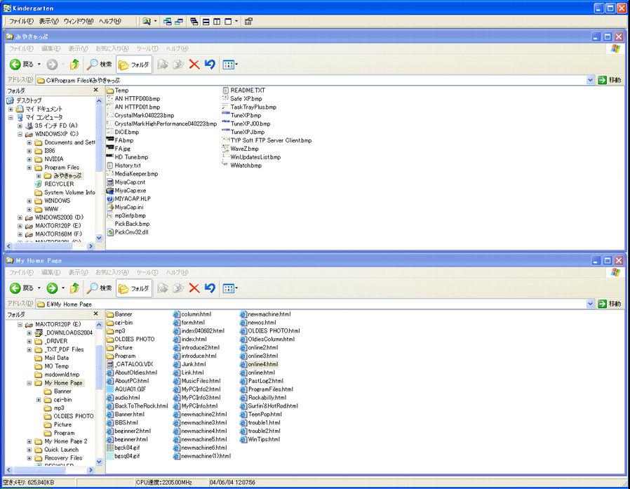 98SEの頃、少ないHDDの容量やMemory残量、CPU使用率、リソース残量などを一括して表示してくれ、大変重宝していたものです。最近この機能の一部を探している方がいましたので、これもフト気になって再度探してみました。そしたら、これもバージョンアップされ2000/XPに対応しておりました。サイトは移転してました。旧バージョンは1.65f7、最新バージョンは、1.99e6です。頒布先はVectorですが、ここに載っている作者のページは廃止されています。せっかくですので、入手先も紹介しておきます。ここならば、最新版より使いやすい旧バージョンが入手できます(ただし、XPでは動作しません)。 サンプル http://www.css-net.jp/cham/index.html |