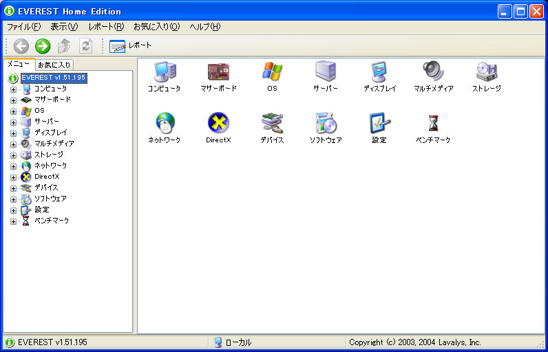 システム情報を、OS標準より詳細に表示してくれる優れもの。 以前、AIDA32としてリリースされていたものの後継アプリで、以前と違うところは、メモリーのSPD情報の対応性が向上したことです。 また、メモリーのベンチマークも面白いですよ。なかなか有用なものなので、再度紹介しておきます。 入手は次のURLからどうぞ。 サンプル http://www.lavalys.com/products.php ☆現在は残念ながらHome Editionは廃止され、有料化されたUltimate Editionとなっています。 (2007/02/04確認済) |