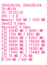 私が好きなシステム情報を表示してくれるもので、以前紹介したDeskToolsの表示機能によく似ていますが、相違点は次のとおりです。 表示は文字のみで、カーソルの位置により表示・非表示が可能、HDDドライブは総て表示可能、インターネットの転送速度表示が可能などです。 なお、表示が特殊なせいかキャプチャーできないため、サンプルが採れませんでした。(その後採ることに成功しました。) 入手は次のURLからどうぞ。 サンプル http://hp.vector.co.jp/authors/VA013361/ |