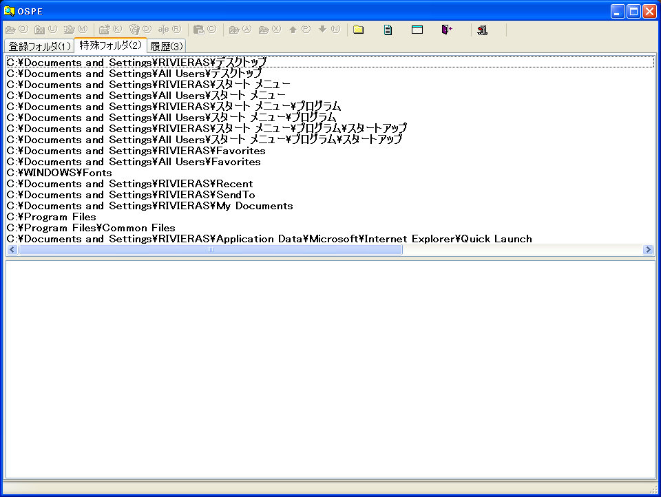 特殊フォルダを簡単に開くことのできるアプリです。また、任意のフォルダを登録することもできます。 これをクイック・ランチに登録しておけば、どんなに階層が深いフォルダでも簡単に開くことができます。なかなか面白いものなので、紹介しておきます。 入手は次のURLからどうぞ。 サンプル http://www2.osk.3web.ne.jp/~sm/ospe/ospe.html |