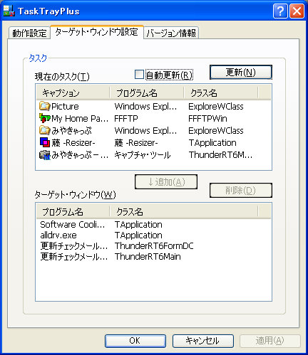 これはなかなかにおもしろいアプリです。使用方法は、常時起動させておきたいが、最小化時にタスクバーに入れるのではなく、タスクトレイにアイコン表示させ、あたかも常駐アプリとして使用しているようにするものです。使用方法は、まず登録したいアプリを起動させてからTaskTrayPlusを起動すると、タスクトレイに常駐します。次にタスクトレイのアイコンを右クリックして設定を選ぶと、アプリを登録するダイアログが表示されます。現在起動中のものを追加してOKすると、ダイアログは消えます。その後、登録したもののウィンドウを最小化させると、タスクトレイにアイコンが表示されますので、好きなときにちょいと表示することができるようになります。最小化の時にタスクトレイに収納できないものを常駐型として使用するときに非常に便利なものです。 入手は次のURLからどうぞ。 サンプル http://bnassoft.s35.xrea.com/ |