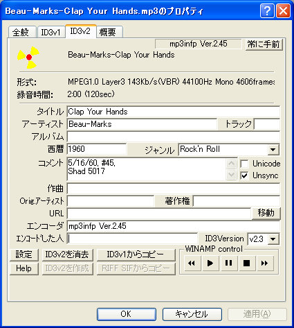 ショートカットから起動するアプリは、起動しているという意識がはっきりしているため、お世話になってるなとよく思いますが、右クリックのメニュー等のみから起動するものは環境に同化してしまい、ついその存在を忘れてしまいます。音楽ファイルを扱うことが多い私ですが、その中にあって大活躍するアプリの一つがこれです。 mp3ファイルには、曲のデータを収録するIDタグというのがありますが、この中身をポップアップで表示してくれたり、ファイルのプロパティから編集可能にしてくれたりと、至れり尽くせりのものです。これまで紹介するのを失念してましたが、この度バージョンアップしたのを機会に紹介しておきます。 入手は次のURLからどうぞ。 サンプル http://win32lab.com/fsw/mp3infp/ |